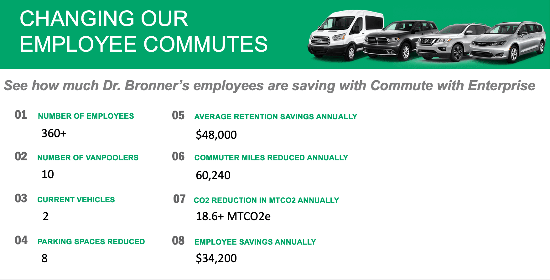 Our vanpooling program aligns with Dr. Bronner’s company objectives by: